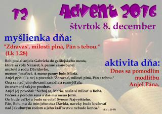 Boh poslal anjela Gabriela do galilejského mesta, ktoré sa volá Nazaret, k panne zasnúbenej mužovi z rodu Dávidovho, menom Jozefovi. A meno panny bolo Mária.